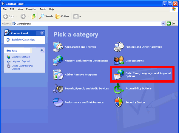Inside Control Panel look for (Date, Time, Language, and Regional)